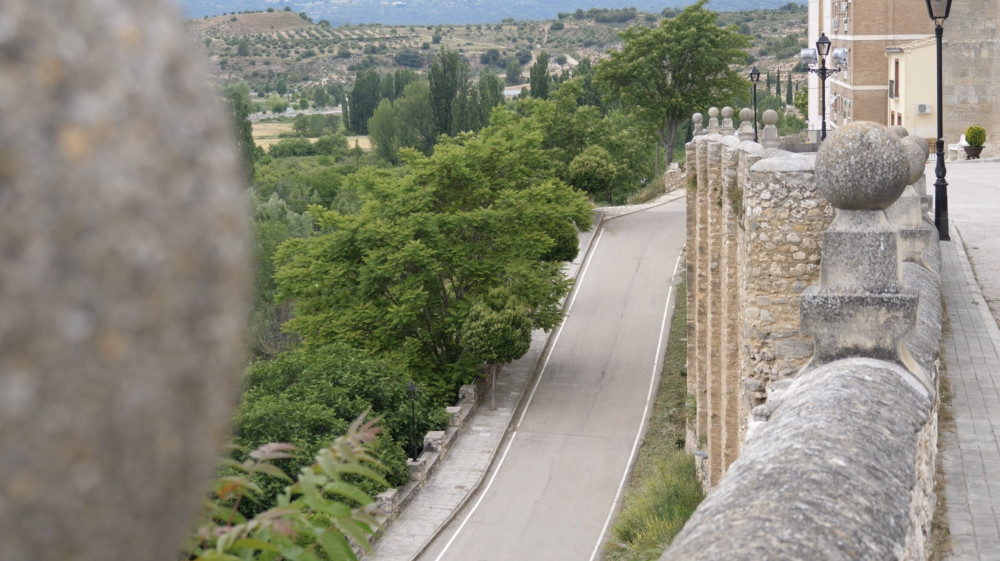 Frente a la iglesia está uno de los tramos que se conservan del antiguo recinto amurallado de Pareja. Desde el siglo XI, esta barbacana formó parte de la fortificación que en la villa se construyó como elemento imprescindible para la defensa y consolidación de los territorios reconquistados. La posición estratégica de la población en las estribaciones del Río Tajo, hizo que, muy probablemente, formase parte de la Marca Media que los árabes establecieron como línea de frontera.