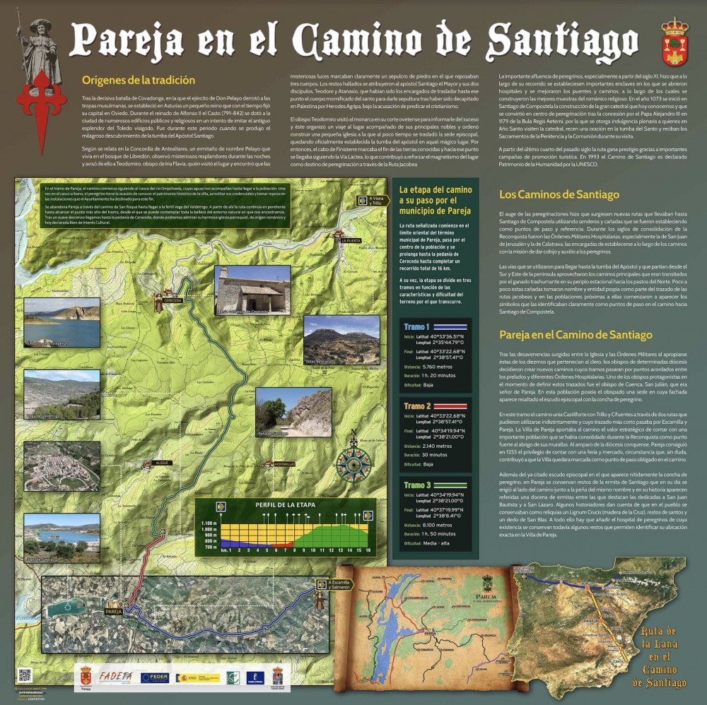 A las balizas se unen tres paneles informativos que ilustran el camino e informan al peregrino, ubicadas en el dique del río Ompólveda, en la entrada a Pareja por la calle Molino, y en Cereceda.