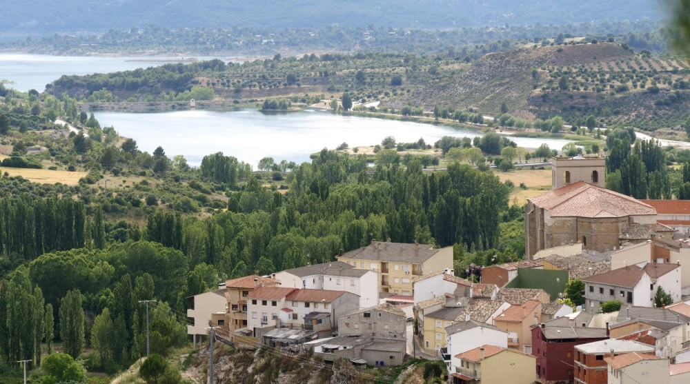 Desde allí, y dirigiendo la vista hacia el Sur, se pueden divisar la vega del río Ompólveda y los caminos hacia Casasana y Tabladillo; los montes aparecen punteados por los olivares de cuya variedad de aceituna “verdeja” se obtiene el aceite con denominación de origen de La Alcarria. Si el caminante enfoca su mirada, o la de su cámara de fotos, hacia el Oeste, contemplará el embalse de Entrepeñas, el dique de Pareja y más cerca, el caserío de la villa.