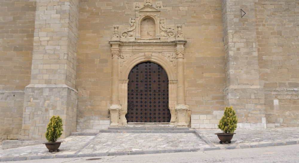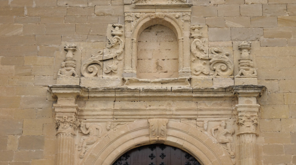 En la fachada de poniente se encuentra una portada plateresca, formada por un arco de medio punto entre columnas, con figuras femeninas, es la conocida como Puerta del Sol. Se trata de una muestra magnífica del estilo renacentista más elegante y mejor medido.