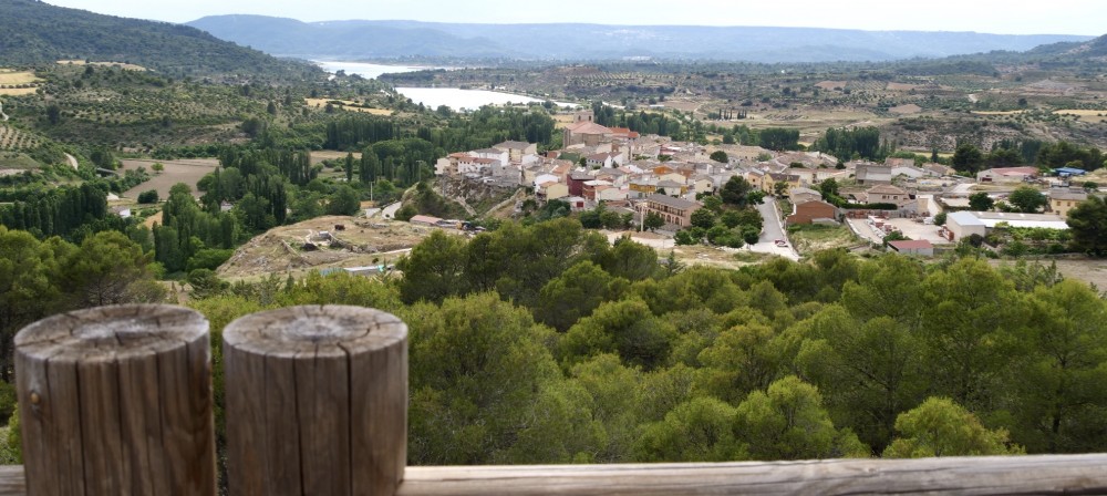 Desde allí, y dirigiendo la vista hacia el Sur, se pueden divisar la vega del río Ompólveda y los caminos hacia Casasana y Tabladillo; los montes aparecen punteados por los olivares de cuya variedad de aceituna “verdeja” se obtiene el aceite con denominación de origen de La Alcarria. Si el caminante enfoca su mirada, o la de su cámara de fotos, hacia el Oeste, contemplará el embalse de Entrepeñas, el dique de Pareja y más cerca, el caserío de la villa.
